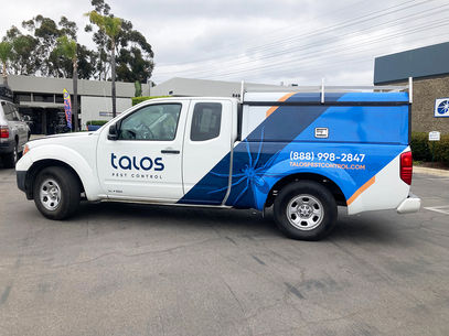 We recently rebranded the Talos Pest Pickup Truck, with a partial wrap, that we designed and printed using 3M premium vinyl. This eye catching update not only enhances the truck's appearance but also showcases Talos Pest's dedication to quality service. We're excited to see this new look on the road!
